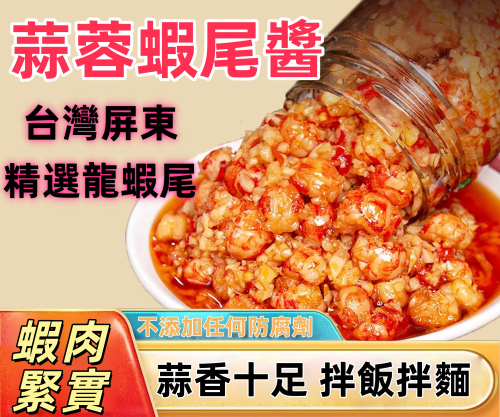 海味爆擊!屏東蒜蓉蝦尾醬|鮮甜海味瞬間爆發 嚴選屏東優質龍蝦!|蝦肉Q彈飽滿緊實超滿足!!! 【不添加防腐劑】【純人工製作】【精選食材】【優質菜籽油】每一口都超滿足!!!